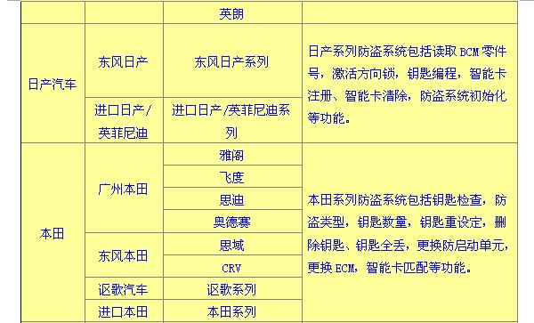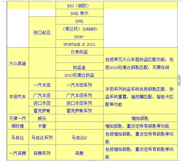 二、支持進口車系、國產車系和合資車的防盜匹配