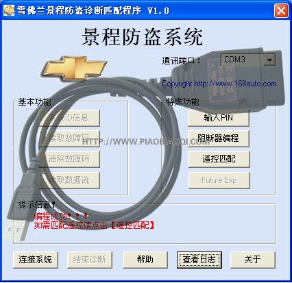 特點:使用專用的K-BUS或VCM-168+硬件,USB接口,端口自動偵測,速率自適應,支持鑰匙匹配和遙控匹配。: P0 |+ k, O! I7 L% `/ v6 I1 W( p9 Z' X! y# m: z" f5 T未注冊版本軟件可以使用基本功能。 $ m) ~: l- B注冊以后將可以使用高級功能:阻斷器編程。