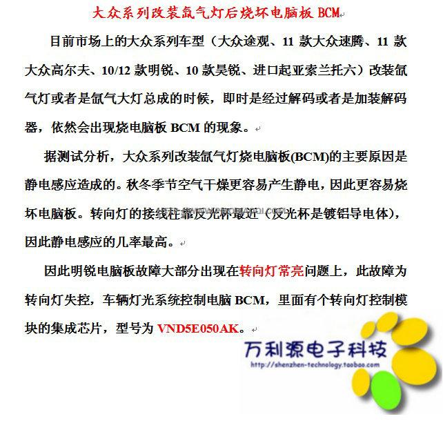 VND5E050AK 大眾途觀明銳昊銳車身電腦模塊BCM轉向燈控制芯片常亮